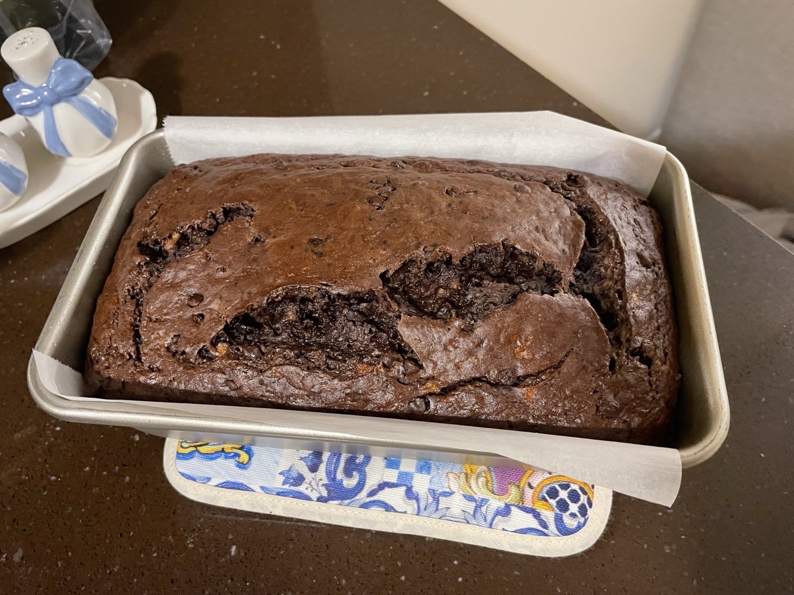 A decadent banana bread that is really more like a brownie—sweet, chocolatey, very moist, and made with healthier swaps like Greek yogurt and extra bananas.